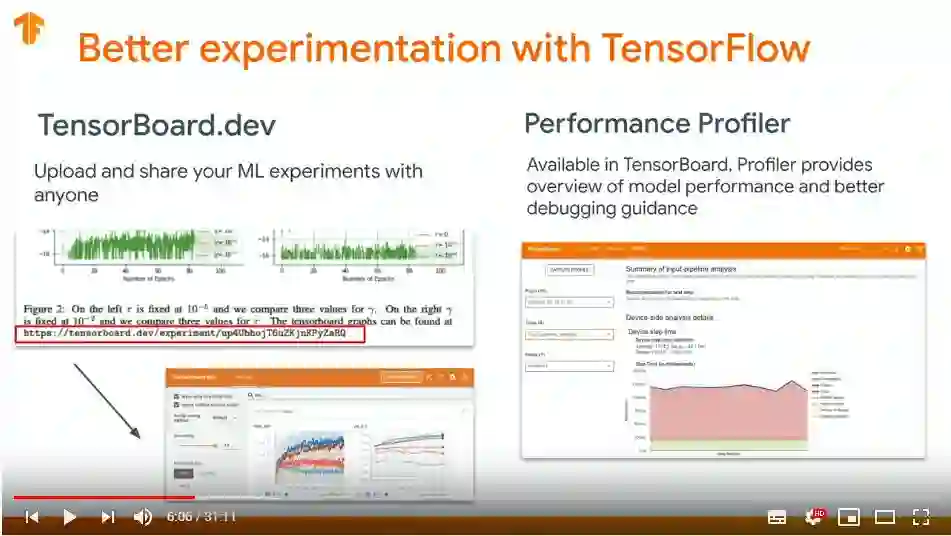 用户可以通过URL的方式将TensorBoard中的实验结果分享给他人,TF官方希望用户可以在论文中以引用tensorboard.dev的URL的方式来展现实验结果: