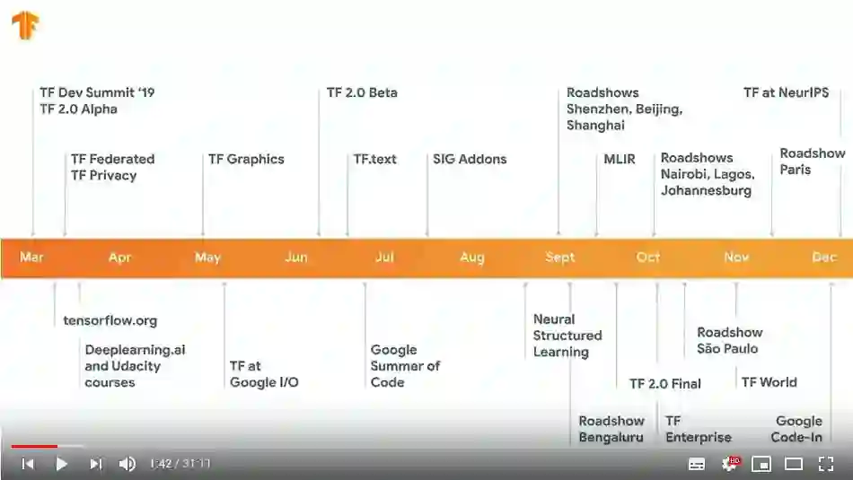 自TF Dev Summit 2019之后,TF2及其生态圈发展的时间线如下所示: