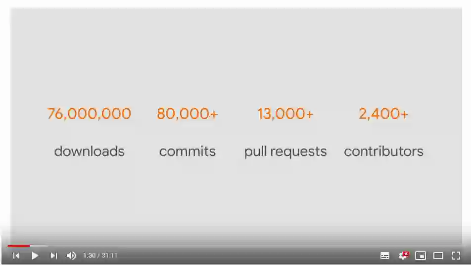 从社区的活跃度、下载量等数据来看,目前TensorFlow仍处于飞速发展的状态,且具有非常庞大的用户群体: