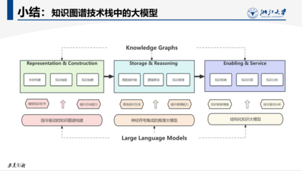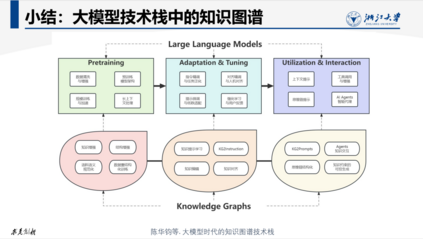 总结与展望最后我们从三个视角做一个总结:● “语言” vs “知识”:语言和知识密不可分,语言模型与知识图谱都是用来处理世界知识的手段。以ChatGPT为代表的大型语言模型技术的发展代表人工智能表示和处理知识能力的大幅提升。● “新KG”技术栈:在大模型时代,知识图谱不是没有用了,而是更加重要了,可以预见随着语言模型与知识图谱的深层次融合,一个全新的知识图谱技术栈会逐步演进和形成。● 从“LLM”到“LKM”:人类知识高度复杂,很多知识是无法用自然语言序列来表示和描述的。我们在刻画客观世界时,更多采用的是多样化的结构化描述。大型语言模型只是起点,我们最终需要发展的是能够大规模编码和处理各种知识表示结构的大型知识模型(Large Knowledge Model)。 知识的表示与处理是人工智能自诞生以来的核心目标之一,而作为同样用来处理知识的大型语言模型和知识图谱各有优缺点。大模型补足了理解语言的能力,知识图谱则丰富了表示知识的方式,两者的深度结合必将为人工智能提供更为全面、可靠、可控的知识处理方法。