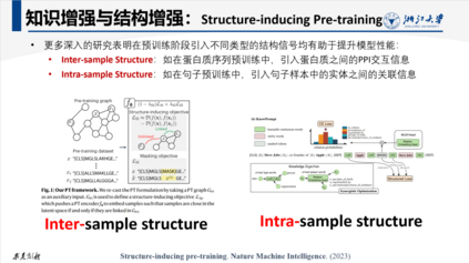 我们再从样本Sample的视角讨论一下结构增强。这项称为“Structure-inducing Pretraining”的研究探讨了建立训练样之间的结构化关联关系对于提升模型性能的作用。在该文中,作者综述了当前预训练模型对于样本结构信号的利用情况,并指出大部分模型在这方面考虑不足。并进一步从理论分析和实验验证系统性分析了在模型训练阶段注入结构信号的价值。这些结构信号包括:Inter-sample Structure(如在蛋白质序列预训练中,引入蛋白质之间的PPI交互信息)和Intra-sample Structure(如在句子预训练中,引入句子样本中的实体之间的关联信息)。