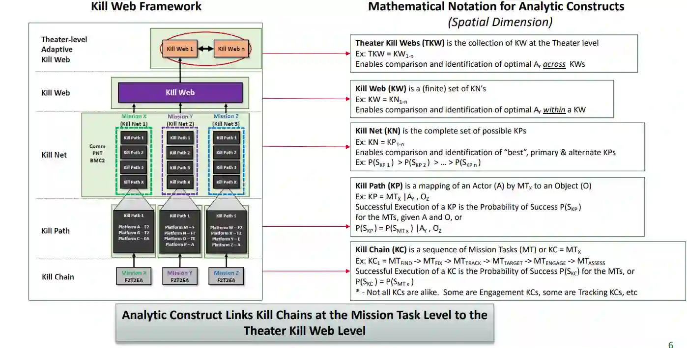 发现、固定、跟踪、瞄准、交战、评估(F2T2EA)杀伤链由分布在空间和时间上互锁的系统完成,这些系统作为一个系统的系统发挥作用
