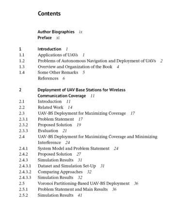 这本书主要是一本研究专著,以详细和统一的方式介绍了无人机在无线通信、地面目标和区域的监视和监测的应用,以及货物交付方面的最新进展。本专著的主要目标读者包括研究生和研究生,以及在机器人、航空航天工程、无线通信、信号处理、系统理论、计算机科学和应用数学等多个领域工作的专业研究人员和行业从业者,他们对日益增长的自主导航和无人机部署领域有兴趣。这本书基本上是自成体系的。假定读者熟悉基本的本科水平的数学技巧。给出的结果在很大程度上进行了讨论,并通过实例加以说明。我们希望读者发现这本专著有趣和有用,并对自主导航和部署无人机通信、监视和交付领域的挑战性问题获得更深入的见解。此外,在书中,我们对一些开放的问题做了评论,我们鼓励读者进一步探索。这本书中的材料来自2018年至2022年期间两位作者之间的研究合作。它的一些部分单独出现在期刊和会议论文中。手稿将它们整合成一个统一的整体,突出它们之间的联系,补充作者新的原始发现,以系统和连贯的方式呈现整个材料。
