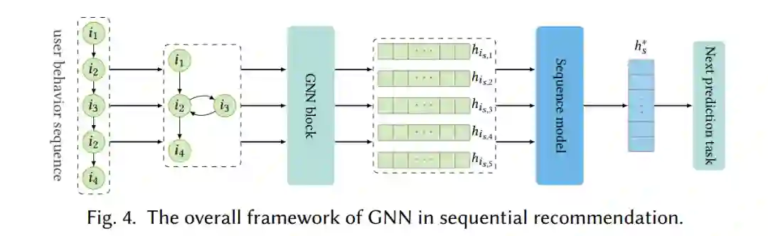 序列推荐是基于用户的近期活动预测用户下一个偏好,因此需要建模序列特征。下图演示了如何使用 GNN 做序列推荐: