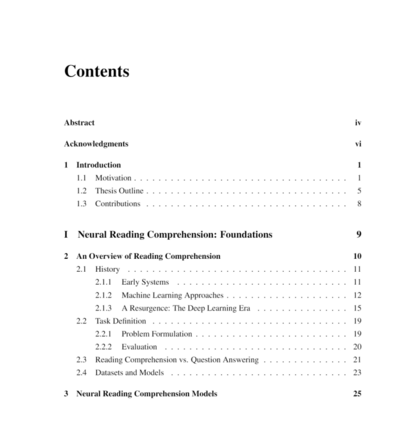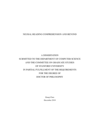 教机器理解人类语言文档是人工智能中最难以捉摸和长期存在的挑战之一。本文探讨了阅读理解的问题:如何构建计算机系统来阅读文章和回答理解问题。一方面,我们认为阅读理解是评价计算机系统对人类语言理解程度的一项重要任务。另一方面,如果我们能够构建高性能的阅读理解系统,那么它将成为问答和对话系统等应用的关键技术。本文以神经阅读理解为研究对象:一种基于深度神经网络的阅读理解模型。与传统的稀疏的、手工设计的基于特征的模型相比,这些端到端神经模型在学习丰富的语言现象方面更加有效,并且在所有现代阅读理解基准上的表现都有很大的提高。本文由两部分组成。第一部分是对神经阅读理解的本质进行概括,介绍我们在构建有效的神经阅读理解模型方面所做的努力,更重要的是了解神经阅读理解模型实际学到了什么,以及解决当前任务需要什么样的语言理解深度。我们还总结了该领域的最新进展,讨论了该领域的未来发展方向和有待解决的问题。在本文的第二部分,我们探讨了如何在最近神经阅读理解成功的基础上建立实际应用。特别是,我们开创了两个新的研究方向:1)如何将信息检索技术与神经阅读理解相结合,解决大规模开放领域的问题;(2)如何从当前的单圈、跨步阅读理解模式中构建会话问答系统。我们在DrQA和CoQA项目中实现了这些想法,并证明了这些方法的有效性。我们相信他们对推动未来的语言技术有很大帮助。