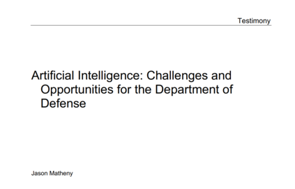 在过去的75年里,兰德公司进行了支持美国国家安全的研究,目前为联邦政府管理着四个联邦资助的研究和发展中心(FFRDCs):一个为国土安全部(DHS),三个为国防部(DoD)。本文将重点评论国防部如何能够最好地确保人工智能(AI)的进展有利于美国国家安全,而不是降低它。