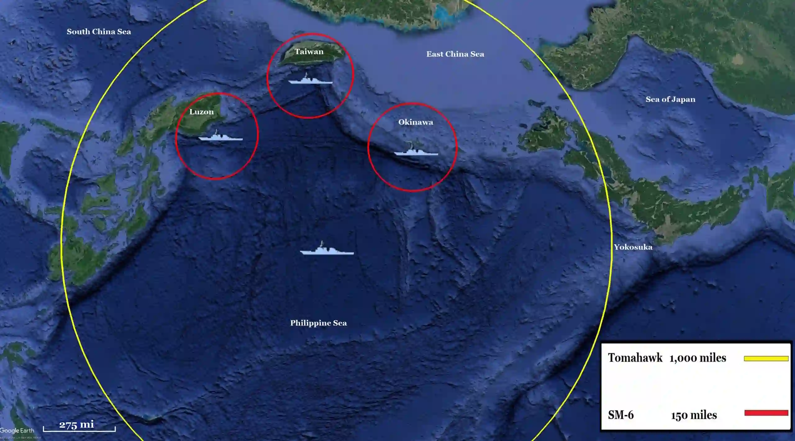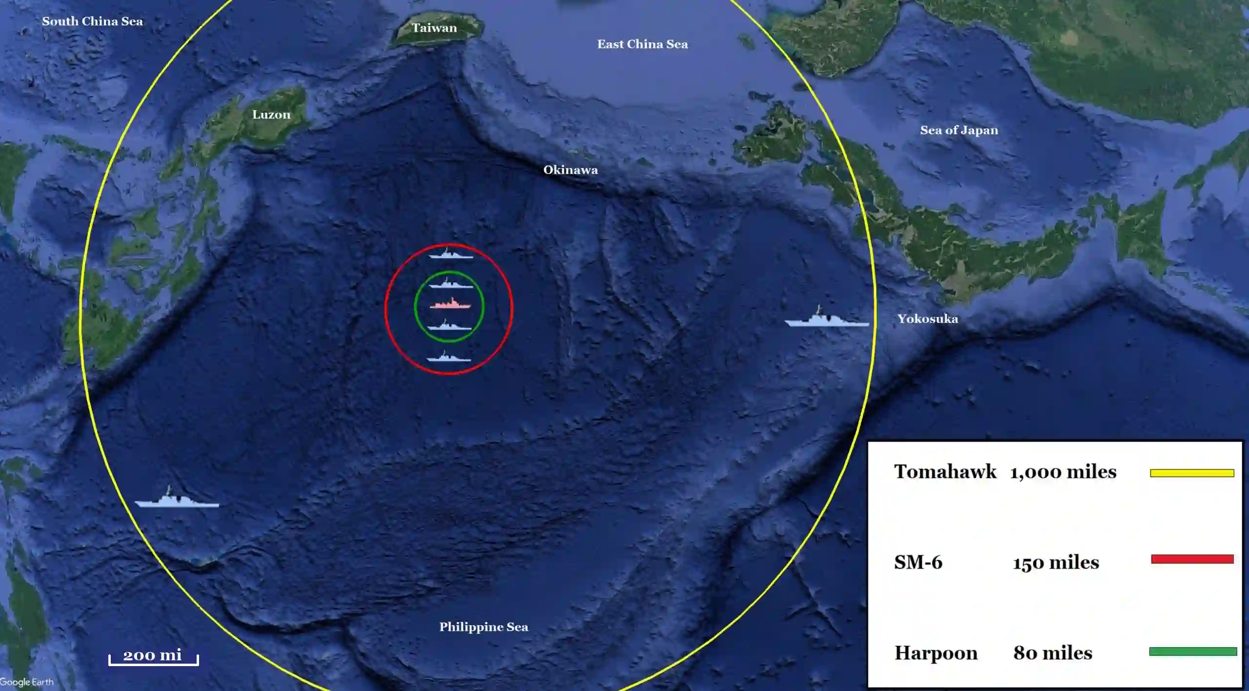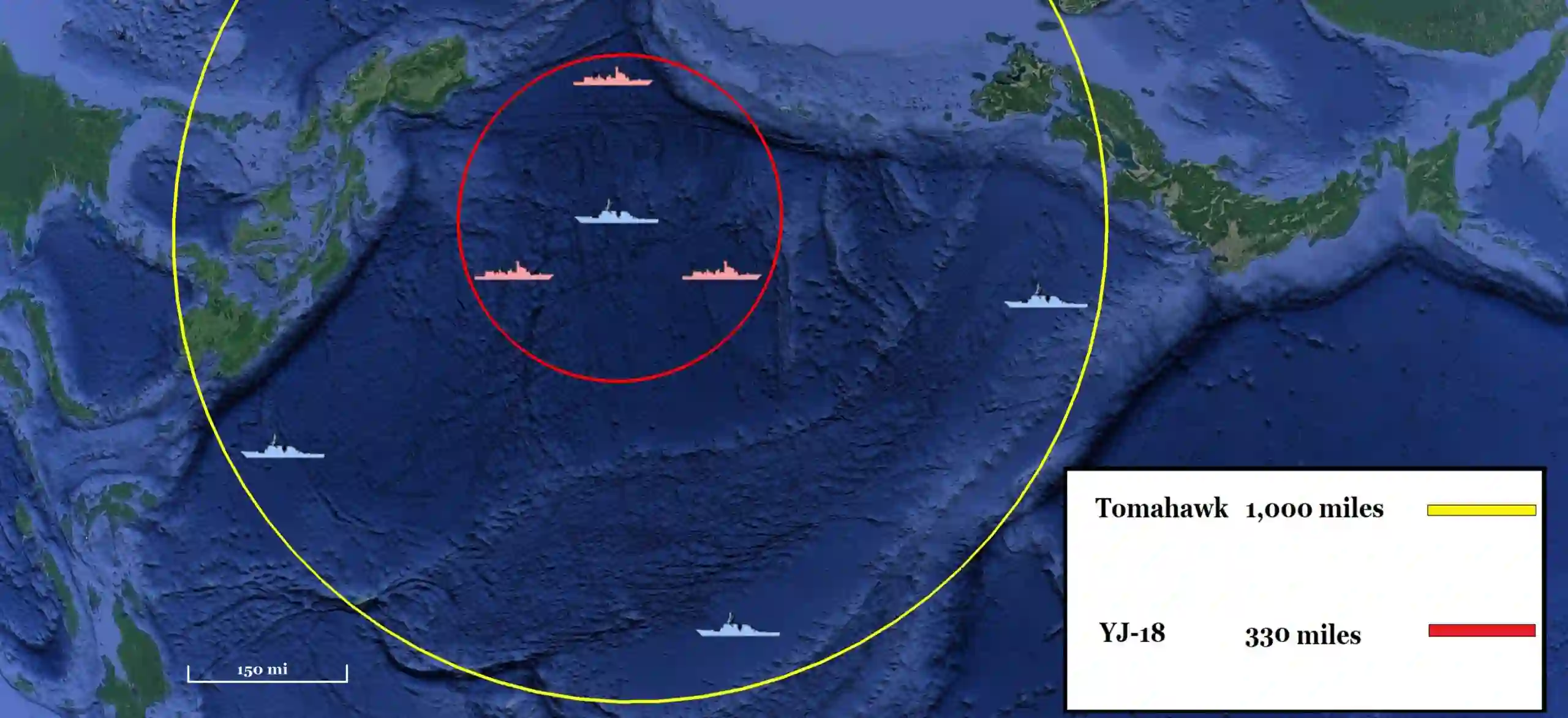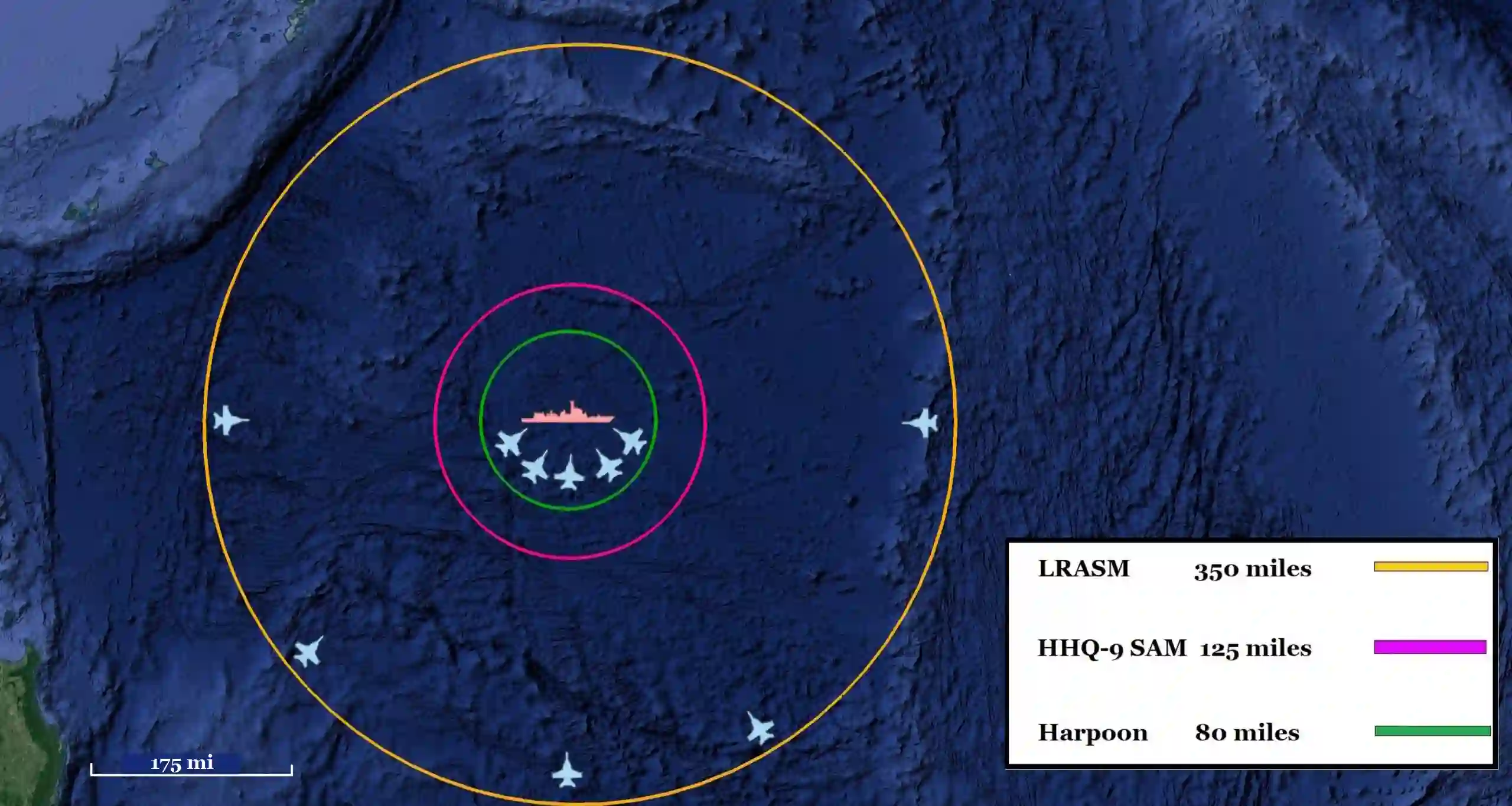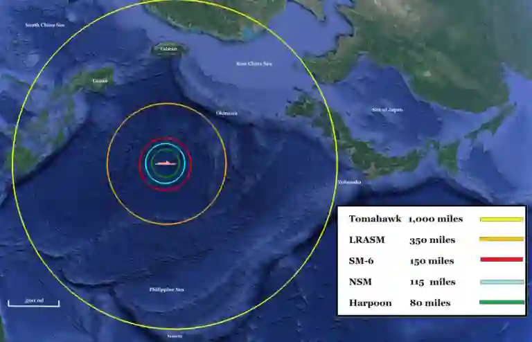 图 2. 美国所有反舰导弹的 "反向 "射程环。(作者制图)