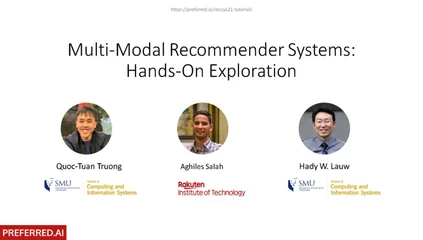 推荐系统通常从用户项目偏好数据(如评级和点击)中学习。这种信息在本质上是稀疏的,即,观察到的用户-项目偏好通常只代表可能的交互的不到5%。缓解数据稀疏性的一个有希望的方向是利用辅助信息,这些辅助信息可能编码关于用户如何消费商品的额外线索。这类数据(称为模态)的例子包括社交网络、商品的描述性文本、产品图片。本教程的目的是全面回顾最近的进展,以表示、转换和合并不同的模态到推荐模型中。此外,通过实际操作,我们考虑跨模态比较,以调研不同方法和模态的重要性。实际操作将通过Cornac (https://cornac.preferred.ai)进行,这是一个多模态推荐系统的比较框架。