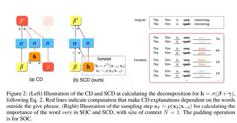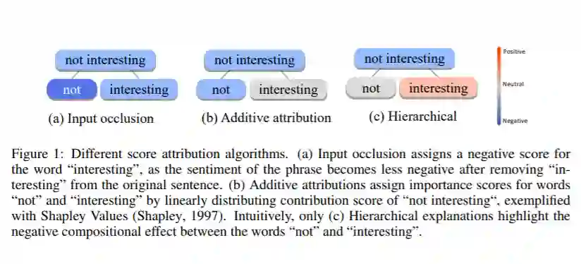 深度神经网络在处理复杂的自然语言语义方面取得了令人印象深刻的成绩,但大多数情况下被当作黑匣子。为了解释该模型如何处理单词和短语的组合语义,我们研究了层次解释问题。我们强调的关键挑战是计算非附加和上下文无关的单个单词和短语的重要性。我们展示了之前在层次解释上的一些努力,例如上下文分解,在数学上不能满足期望的属性,导致不同模型的解释质量不一致。在本文中,我们提出了一种形式化的方法来量化每个词或短语的重要性,从而产生层次解释。我们根据我们的公式修改了上下文分解算法,并提出了一个具有竞争性能的与模型无关的解释算法。对LSTM模型和对多个数据集的微调BERT Transformer模型进行人工评估和自动度量评估表明,我们的算法在层次解释方面明显优于先前的工作。我们展示了我们的算法有助于解释语义的组合性,提取分类规则,提高模型的人类可信度。