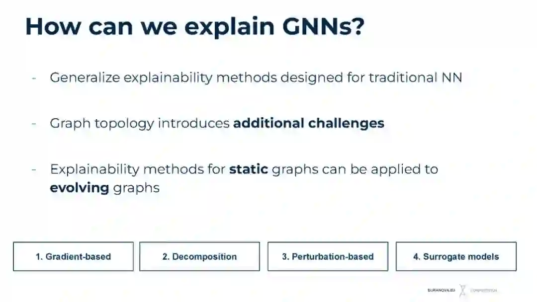 随着时间的推移,从汽车、制药到电子商务和银行,大型网络数据已经在大多数行业中无处不在。尽管最近做出了一些努力,但以有效和可扩展的方式在不断变化的数据上使用时间图神经网络仍然是一项挑战。本次演讲展示了euroanova的研究轨迹之一。我们提供了直接适用于实际用例的相关持续学习方法的概述。由于可解释性已成为值得信赖的AI的核心要素,我们引入了最先进的方法,用于解释节点、链接或图级预测。