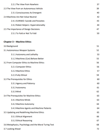 第二章致力于探索科学和技术,甚至是人工智能机器,并非没有价值或价值中立的方式。虽然不是我关于实施机器伦理的论点的核心,但一个普遍的想法是,机器可能会做出更 "客观 "的决定,采取更 "客观 "的行动,这种客观性是与主观性相对的。然而,鉴于人类的价值观会以各种方式影响机器的设计和产出,因此无法保证机器会比人类更 "客观"。
