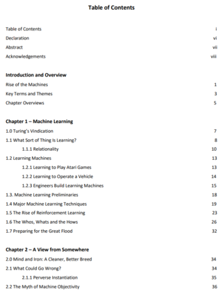 在第一章中,我阐述了学习的一般理论,并展示了它是如何适用于机器的,此外,我还试图说服一个假设的持怀疑态度的对话者,机器的学习方式与人类和其他非人类动物的学习能力基本相同。我还总结了不同的当代机器学习技术,这些技术经常被分为三种主流范式:监督、无监督和强化学习技术。与当代机器学习技术相关的问题,如透明度和可解释性,也被讨论,以便为后续章节的分析奠定基础,例如第五章和第七章。