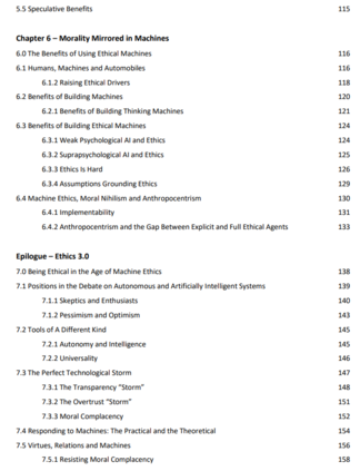 最后,在后记中,作者认为应对人工智能技术所需要的是一个伦理学3.0,以帮助指导人类走向一个可能的未来,在那里所有的人都可能繁荣。虽然人们普遍认为基于权利的框架,以及权利如何可以或不可以扩展到机器上,但我坚持认为,与所提出的基于美德或基于性格的关系方法相比,这种方法是贫乏的。