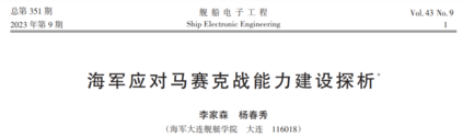 马赛克战是利用自组织网络构建的高度分散、编组灵活、自主协同的杀伤网,使己方拥有更多选择,而让对手 陷于复杂和不确定的战场迷雾,在体系对抗中获取不对称优势。论文基于马赛克战概念、特点以及对水面舰艇的现实威胁, 分别从态势感知、反隐身、电磁战、辅助决策、装备升级、专项训练及效能评估等方面,给出海军应对马赛克战作战样式的能力建设要点,研究内容可为马赛克战应对策略顶层设计和部队战法训法创新提供参考。随着智能技术、无人技术的迅猛发展,以隐身 飞机、高精度导弹、大型作战平台等优势装备为主 的消耗战已不再适用信息化战场[1] 。在“亚太再平 衡”战略背景牵引下,为应对和抵消“反介入/区域 拒止”威胁,美国国防部高级研究计划局(DARPA) 战略技术办公室(STO)于 2017 年 8 月提出了基于 “决策中心战”的“马赛克战”这一创新性作战概 念[2] 。其核心是利用信息网络和各式装置组织成 一张高灵活性、高杀伤力、高度分散的杀伤网[3] 。 美方甚至意将南海作为其“试验田”,并积极为其做 着前期实质性准备,因此海军应紧前从能力建设方 面着手予以应对。
