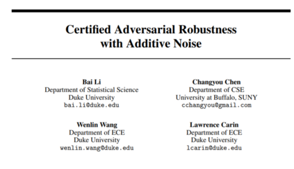对抗性数据实例的存在引起了深度学习社区的高度重视;相对于原始数据,这些数据似乎受到了最小程度的干扰,但从深度学习算法得到的结果却非常不同。尽管已经考虑了开发防御模型的大量工作,但大多数此类模型都是启发式的,并且常常容易受到自适应攻击。人们对提供理论鲁棒性保证的防御方法进行了深入的研究,但是当存在大规模模型和数据时,大多数方法都无法获得非平凡的鲁棒性。为了解决这些限制,我们引入了一个可伸缩的框架,并为构造对抗性示例提供了输入操作规范的认证边界。我们建立了对抗扰动的鲁棒性与加性随机噪声之间的联系,并提出了一种能显著提高验证界的训练策略。我们对MNIST、CIFAR-10和ImageNet的评估表明,该方法可扩展到复杂的模型和大型数据集,同时对最先进的可证明防御方法具有竞争力的鲁棒性。
