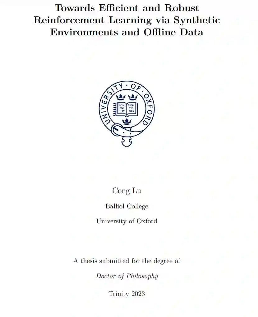 总之,本论文代表了使RL算法更高效并更容易在现实世界中部署的探索。沿着这些方向的进一步进展可能会使我们更接近于更具通用能力的智能体的终极目标,这些智能体既能为自己生成适当的学习环境,又能从大量现有数据中启动学习。