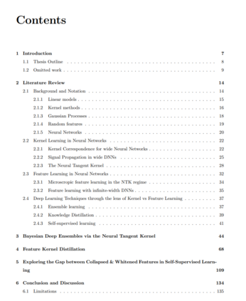 受宽神经网络(NNs)理论的启发,核学习和特征学习近期作为两个范式浮现出来,通过它们我们可以实际理解大规模深度学习系统的复杂行为。在文献中,它们通常被描述为二分法的两个对立面,各自具有优点和缺点:核学习与经过深入研究的机器学习技术(如核方法和高斯过程)建立联系,而特征学习则承诺捕捉更多丰富而尚未解释的,独特于神经网络的属性。在这篇论文中,我们介绍了三项研究,研究结合了来自两个角度的见解来研究神经网络的性质,不仅强调它们的差异,而且强调共同点。我们首先回顾了有关深度学习理论的相关文献,重点是宽神经网络的研究。这为核学习和特征学习的讨论提供了背景,基于此,我们继续描述我们的贡献。首先,我们研究了宽神经网络集合与贝叶斯推断之间的关系,利用核学习与高斯过程之间的联系,并提出了一种修改,以解释神经网络函数在初始化时缺失的方差,从而使我们训练过的深度集合具有贝叶斯解释。接下来,我们结合核学习和特征学习来展示特征核的适用性,即通过最终层神经网络特征的内积引导的核,作为知识蒸馏的目标,其中人们寻求使用强大的教师模型来提高弱学生模型的性能。最后,我们探讨自监督学习中折叠特征和白化特征之间的差距,强调特征核中特征值的衰减率作为一项关键量,它弥合了这一差距,并影响下游泛化性能,特别是在标记数据稀缺的情况下。我们以讨论我们的贡献,包括局限性和未来展望,作为结论。