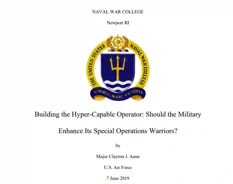 自人类诞生以来,作战技术一直在改进,现代战争现在比以往任何时候都更加复杂,相互关联,节奏更快。小型战术行动产生了深远的战略结果,既有积极的也有消极的。处于这种复杂环境的刀尖上的是美国的特种作战部队(SOF)。尽管有精致的训练和增强的战场技术,实际的SOF操作者仍然是一个 "人类v1.0"。因此,美国军方必须刻意为其特种作战战士实施生物人体强化(HE)计划,并建立 "超能力作战员"。
