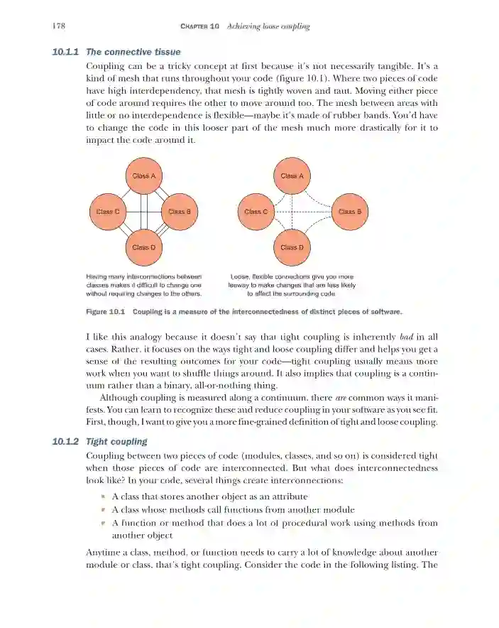 第10章解释了松耦合,提供了一些最终练习来减少您正在构建的应用程序中的耦合。
