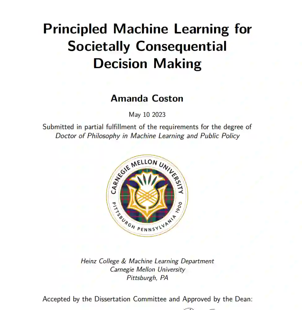 机器学习算法广泛应用于具有社会高风险的决策环境中,如儿童福利、刑事司法、医疗保健、招聘和消费者贷款。近期的历史已经揭示出许多这些算法证明不可靠或不公平的例子。本论文提出了一种遵循原则的方法,用于在社会高风险环境中使用机器学习,该方法由三大支柱引导:有效性、公平性和监管。我们借鉴了包括统计学、机器学习和社会科学在内的各个领域的方法,开发出处理数据挑战和复杂偏见的新方法,这些偏见嵌入在社会技术系统中。我们通过开发考虑到选择偏差、混淆和bandit反馈的算法风险评估方法,解决了挑战算法决策支持系统有效性的数据问题。我们对整个系统中使用算法进行决策的偏见进行了因果审计。在整个过程中,我们提出了使用双重稳健技术进行偏差修正的新方法。我们使用来自阿利根尼县人力服务部、澳大利亚联邦银行和斯坦福公开警察项目的数据,展示了在儿童福利、消费者信贷和刑事司法环境中的实证结果。 机器学习越来越多地被用于做出高风险决策,例如儿童福利、刑事司法、消费者贷款、教育和医疗保健(Saxena等人,2020;Vaithianathan等人,2017;Raghavan等人,2020a;Chouldechova,2017;Cattell等人,2021)。这些决策影响未来的健康和经济机会,总的来说,它们塑造了我们的社会结构。通常,这类任务可用的数据丰富,但往往噪音大,存在偏见或不完整。如果不能妥善处理这些数据问题,可能会对弱势和历史上边缘化的群体造成不成比例的伤害(Barocas和Selbst,2016b;Obermeyer等人,2019a;Coston等人,2020b, 2021a)。在这篇论文中,我们开发了统计方法和一个审议框架,用来识别并解决挑战机器学习在重要环境中负责任使用的数据问题。当机器学习被用于高风险决策时,一个常见的方法是应用标准的监督学习范式。在这种方法下,人们识别出一个感兴趣的结果(通常是实际感兴趣的结果的代理),然后使用其他变量作为预测因子,构建一个对这个结果的预测模型。当数据集并不代表机器学习工具将要部署的目标人群,且预测结果与决策任务相关的结果可能大相径庭时,这种标准方法通常并不适合,这在现实世界的应用中是常见的(Mullainathan和Obermeyer,2021;Coston等人,2020b;Fogliato等人,2021;Wang等人,2022)。此外,计算在保留的集合上的测试指标的标准性能评估方法,往往不能对目标人口的性能提供有效的评估(Kallus和Zhou,2018b;Coston等人,2021b)。