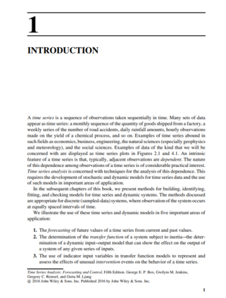 这本书描述了分析离散时间序列的统计模型和方法,并介绍了方法论的重要应用。所考虑的模型包括一类自回归综合移动平均(ARIMA)模型和这些模型的各种扩展。对模型的性质进行了检验,并提出了模型规范、参数估计和模型检验的统计方法。介绍了非季节性和季节性时间序列的预测方法。讨论了传递函数建模两个或多个时间序列之间的动态关系的方法的扩展,建模干预事件的影响,多元时间序列建模,和过程控制。主题,如状态空间和结构建模,非线性模型,长记忆模型,和条件异方差模型也被涵盖。目标一直是提供一个文本,是实用的和有价值的学术和实践者。