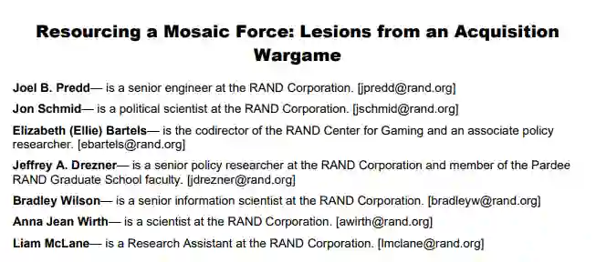 本研究由 DARPA 战略技术办公室赞助,在兰德国防研究所的获取与技术政策中心内进行,该中心是由国防部长办公室、联合参谋部、联合作战司令部、海军、海军陆战队、国防机构和国防情报界赞助的联邦资助研发中心。