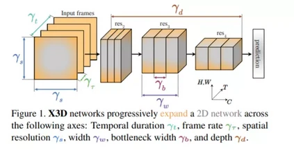 本文提出了一类高效的视频网络——X3D,它在空间、时间、宽度和深度等多个网络轴上逐步扩展了一个微小的二维图像分类体系结构。受机器学习中特征选择方法的启发,提出了一种简单的分步网络扩展方法,该方法在每一步中扩展一条轴,从而达到了较好的精度和复杂度平衡。为了将X3D扩展到特定的目标复杂性,我们执行前向扩展和后向收缩。X3D实现了最先进的性能,同时需要4.8倍和5.5倍的更少的乘法和参数,以达到与以前的工作类似的精度。我们最令人惊讶的发现是,具有高时空分辨率的网络可以表现得很好,而在网络宽度和参数方面则非常轻。在视频分类和检测基准上,我们报告了具有竞争力的准确性和前所未有的效率。