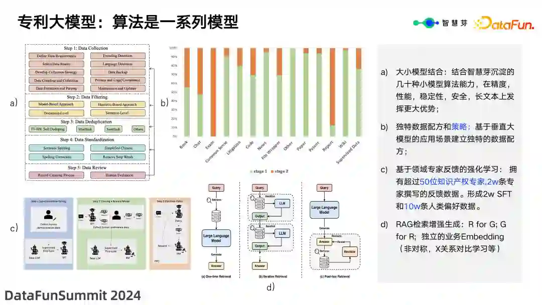 接下来将具体介绍智慧芽专利大模型在数据、算法、评估等方面的实践。 **2. **专利大模型:数据