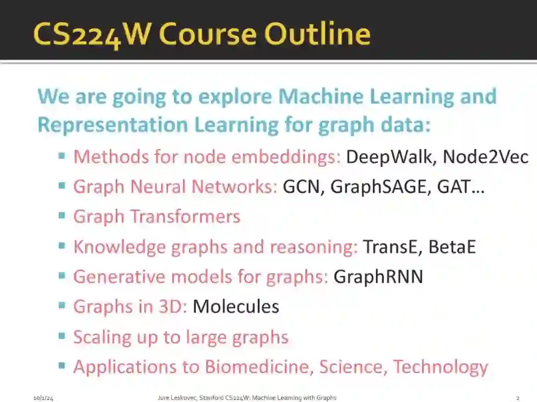 【导读】本文为大家带来了一份斯坦福大学的最新课程CS224W——图机器学习,主讲人是斯坦福大牛Jure Leskovec,他是斯坦福大学计算机学院的副教授,也是图表示学习方法 node2vec 和 GraphSAGE 作者之一。