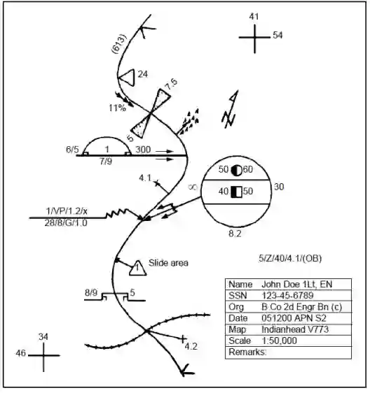 士兵与作战物资在战场空间内的机动对军事行动成功至关重要。目标区域(ROI)的机动分为两个主要类别:进入(entry)与持续保障(sustainment)。进入指将车辆与装备初始部署至目标地点;持续保障则是为持续使用初始进入路径的护航任务提供长期补给。任务规划者通常从进入角度考量目标区域路网——即每辆载具仅进入目标区域一次。此类规划通常聚焦主干道沿线路线,使大规模(可能重装)部队实现初始进入,并提升这些道路维持持续护航行动的可能性。当考虑质量较低路线(如次级及三级道路)时,路况极少被关注,从而忽视了持续保障的长期影响。任务规划者既缺乏低质道路状况信息,也不掌握特定护航车辆通行次数上限,凸显了当前陆军路线规划能力的局限性。传统道路侦察需通过车辆实地穿行路网(图1)与徒步方式人工绘制道路特征,士兵依据《TM 3-34.81技术手册》第三章(陆军部2016)标准进行标注。评估内容包含通行阻碍物点位、滑坡区域及排水设施。该图表仅记录三项可量化参数:路宽、纵坡坡度及曲率半径(RADC)。但正是这些物理参数为采用北约机动参考模型(NRMM)(Ahlvin与Haley 1992)计算速度衰减提供基础。尽管障碍物是机动性的关键因素,其仅占整体路网的极小部分。而制定可靠机动决策需掌握整个路网交通速度的空间态势感知。