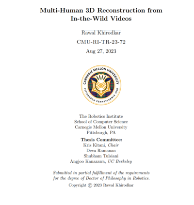 我们研究了野外拍摄的视频中多人三维重建的问题。人类的动作是动态的,准确地在各种环境中重建它们对于开发沉浸式社交远程呈现、辅助性人形机器人和增强现实系统至关重要。然而,创建这样的系统需要解决关于数据和模型架构的以前工作的基本问题。在这篇论文中,我们开发了几个大规模的3D基准测试,旨在评估在苛刻条件下的多人重建,以及对遮挡和拥挤环境有韧性的自上而下的算法。 数据 - 为深度学习模型获得大规模的3D监督是实现真实世界泛化的关键。然而,与大规模2D数据集不同,3D数据集的多样性显著受限 - 主要是因为在3D空间中手工注释是不切实际的。因此,大多数3D基准测试都限制于室内环境,或者最多是两个室外的人类主题,摄像机的移动缓慢或固定,并且遮挡最小。为了解决这个差距,我们探索使用3D合成数据,并构建两个真实的多人3D数据集,这些数据集包括动态的人类活动、快速的摄像机移动和人与人之间的接触,这些在之前的基准测试中都被忽视了;以突出现有方法的关键局限性。 方法论 - 一个通用的多人3D重建方法应该对尺度变化和遮挡具有韧性,并结合绝对深度理解。我们在2D和3D设置中引入了这些特性的算法,这些算法使我们能够推理在动态环境和拥挤场景中的多个人。我们的自上而下的方法利用空间-上下文信息来推理3D场景中严重遮挡的人类。 基于这两个组件,我们开发了从野外视频中重建动态场景中的多个人的通用3D方法。