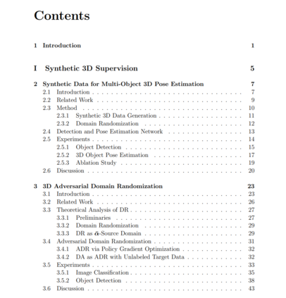 在本论文中,我们解决了这两个主要的挑战:创建大规模的多人数据集以及改进3D人体重建技术。我们的讨论分为三部分。在第一部分中,我们探讨了使用合成3D监督以及它纠正当前数据集偏见的潜力。这引出了关键问题:纯粹在合成数据上进行训练的模型可以被信任在真实数据上工作得很好吗?我们如何在它们之间建立域间的桥梁?在第二部分,我们评估了当前方法在多人上下文中的局限性,从简单的任务如2D姿态估计开始,然后转向更复杂的任务,如从单一图像恢复3D网格。在第三部分,我们回到数据主题,考虑在确保其真实性和多样性的同时,在大规模收集实际的多人数据的需要和挑战。 第一部分:合成3D监督。利用最先进的模拟器为3D人体重建的大规模监督生成合成数据的想法是一个令人信服的想法。在这一部分,我们检查一个中心问题:当纯粹在合成数据上进行训练时,3D方法可以可靠地扩展到真实世界的数据吗?在第2章,我们提供了证据,表明使用域随机化的数据允许方法泛化,即使没有真实世界的注释,特别是对于3D对象姿态估计任务。然而,我们观察到,对域随机化的普通方法并不是最有效率的,通常需要许多合成样本才能达到可靠的实数据泛化。第3章解决了这一挑战,引入了一个更有效的域随机化方法,使合成数据的生成与深度模型在训练期间的持续进展保持一致。这一章还概述了关于需要多少数据才能实现可靠的实际世界泛化的理论保证。