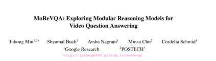 本文通过一个分解的多阶段、模块化推理框架来解决视频问答(videoQA)任务。以往的模块化方法已经在视觉内容未涉及的单一规划阶段显示出潜力。然而,通过一个简单有效的基线,我们发现这样的系统在实践中对于具有挑战性的视频问答设置可能导致脆弱的行为。因此,与传统的单阶段规划方法不同,我们提出一个包括事件解析器、基础阶段和最终推理阶段以及外部存储的多阶段系统。所有阶段都无需训练,并通过大模型的少数次提示进行,每个阶段都产生可解释的中间输出。通过分解基础规划和任务复杂性,我们的方法MoReVQA在标准视频问答基准(NExT-QA、iVQA、EgoSchema、ActivityNet-QA)上超越了以往的工作,取得了最新的成果,并扩展到相关任务(基于视频的问答、段落标题生成)。