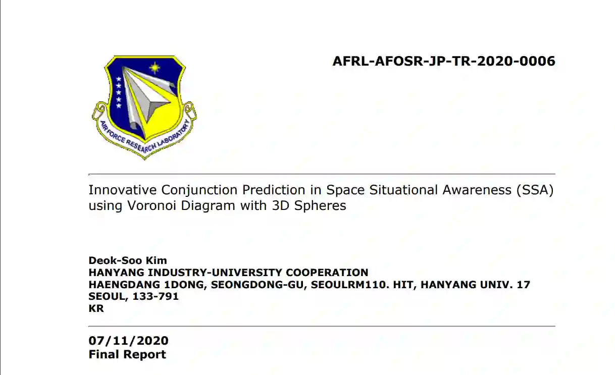 避免碰撞是保证地球空间安全和效率的关键任务之一。这项工作研究了用于避免碰撞的结合体的检测和分辨率,并开发了一种基于三维球体的动态沃洛尼图(DVD)预测结合体的算法。我们已经成功开发、实施并测试了三维球体的DVD算法。然后,我们在DVD算法的基础上,开发并实施了COOP2(连合轨道物体预测和规划器)算法/程序。COOP2显示了一种被证明的数学能力,可以检测到所有的结点,没有任何遗漏的情况。使用从韩国航空航天研究所(KARI)获得的TLE数据测试了COOP2,其中包括以下五颗韩国卫星的轨道运动:KOMPSAT-2、KOMPSAT-3、KOMPSAT-3A和KOMPSAT-5。开发了COOP2的高级功能,在给定检测到的会合时,通过使用存储在COOP-HSTRY文件中的事件历史快速评估备选方案,产生最佳机动计划。用无人机群验证了COOP2算法和程序的正确性和性能。假设飞行一个无人机群,每个无人机在三维空间中遵循自己的路径。在这种情况下,就像驻地空间物体(RSO)一样,能够使用COOP2程序来生成所有无人机的无碰撞飞行路径,这样算法/程序的性能和正确性就可以得到验证和确认。