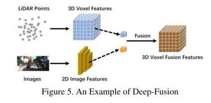 深度特征融合的方法其实也很常见。如下图 深度特征融合 我们可以很直接清晰的看到LiDAR点图分支和Images分支在经过各自的特征提取器后,得到高维度的特征图,并通过一系列下游模块对两个分支模态进行融合。与其他的融合方式不同,深度融合有时候也会通过级联的方式对高级特征和原始特征进行融合,同时利用高级的特征信息和含有丰富物理信息的原始特征。