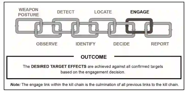 直射杀伤链旨在规范描述直射武器操作者、班组、乘组及排级单位的任务行动,使士兵与指挥官最大化杀伤效能同时降低误伤与附带损伤。火力指挥隶属杀伤链"接战"环节,描述班/乘组/集体单元火力指令的要素、术语及类型,构成对确认威胁实施直射的框架。本训练条令为车载武器平台、小分队及集体单位提供高度通用性。"领导者"或"车长"(VC)等术语指代有权下达执行指令的指挥岗位,必要时可增补具体职位说明。