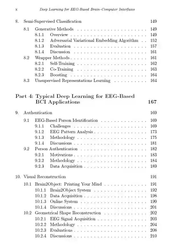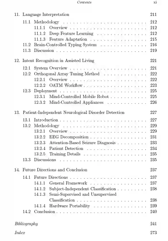 语言 Preface * 背景 Background: Introduction Brain Signal Acquisition Deep Learning Foundations 深度学习BCI Deep Learning-Based BCI and Its Applications: Deep Learning-Based BCI Deep Learning-Based BCI Applications Recent Advances on Deep Learning for EEG-Based BCI: Robust Brain Signal Representation Learning Cross-Scenario Classification Semi-Supervised Classification Typical Deep Learning for EEG-Based BCI Applications: Authentication Visual Reconstruction Language Interpretation Intent Recognition in Assisted Living Patient-Independent Neurological Disorder Detection Future Directions and Conclusion Bibliography Index