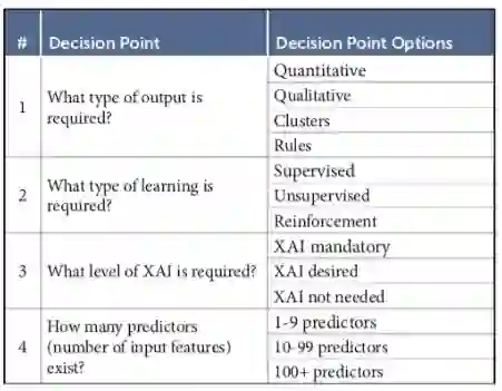 第三个决策点根据对人工智能方法的内部运作需要多少可解释性(或透明的洞察力)来评估每个杀伤链功能(XAI=可解释的人工智能)。为了本研究的目的,这三个选项是基于对要求强制性XAI、希望的XAI或不要求XAI的定性评估。