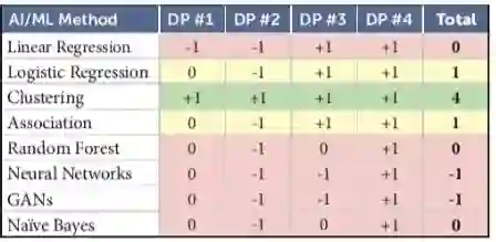 表8所示的定量图谱是对28个杀伤链功能中的每一个功能进行决策点评估的结果。每个功能的单独记分卡可以在相关的顶点报告中找到(Burns et al, 2021)。虽然大多数记分卡导致了一个明确的主导AI/ML方法的适用性,但有四个杀伤链功能被评估为有一个以上的潜在方法可供选择。在8种打分的AI/ML方法中,只有4种得分高到可以进入最终映射:聚类、关联、逻辑回归和线性回归。