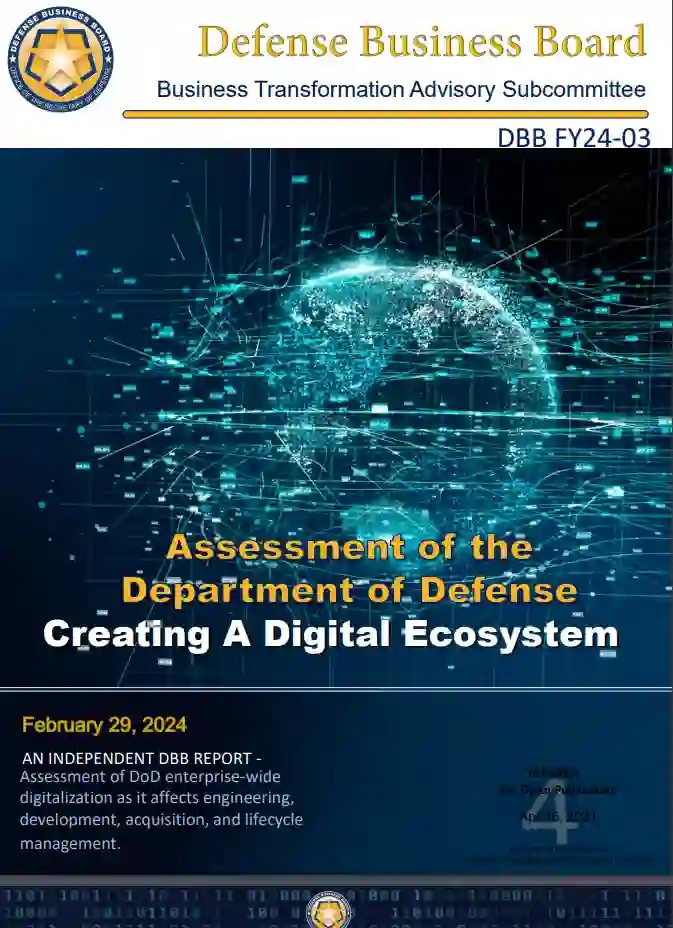 2023年7月31日,国防部副部长(DepSecDef)责成国防业务委员会(DBB或 “委员会”)通过其业务转型咨询小组委员会(“小组委员会”),评估生命周期数字化的需求,并就与行业合作伙伴创建数字生态系统提出建议。生命周期数字化是指在整个产品生命周期(需求、工程、采购和维护)中整合数字技术、数据和系统。这一过程涉及将协作数据平台、人工智能(AI)、预测分析、数字双胞胎、先进制造、全面生命周期管理和自动化等创新技术融入并结合起来。