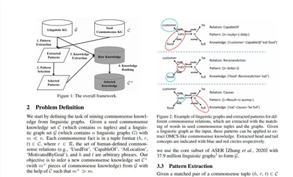 常识知识的获取是人工智能的关键问题。传统的获取常识的方法通常需要耗费大量人力和财力进行注释,而这在大规模的情况下是不可行的。本文探讨了一种从语言图形中挖掘常识性知识的实用方法,目的是将通过语言模式获得的廉价知识转化为昂贵的常识性知识。其结果是将大规模的选择性偏好知识资源ASER [Zhang et al., 2020]转换为与ConceptNet [Liu and Singh, 2004]具有相同表示的TransOMCS,但要大两个数量级。实验结果表明,该方法在量、新颖性、质量等方面都具有从语言知识到常识的可转移性和有效性。TransOMCS可通过以下网址访问