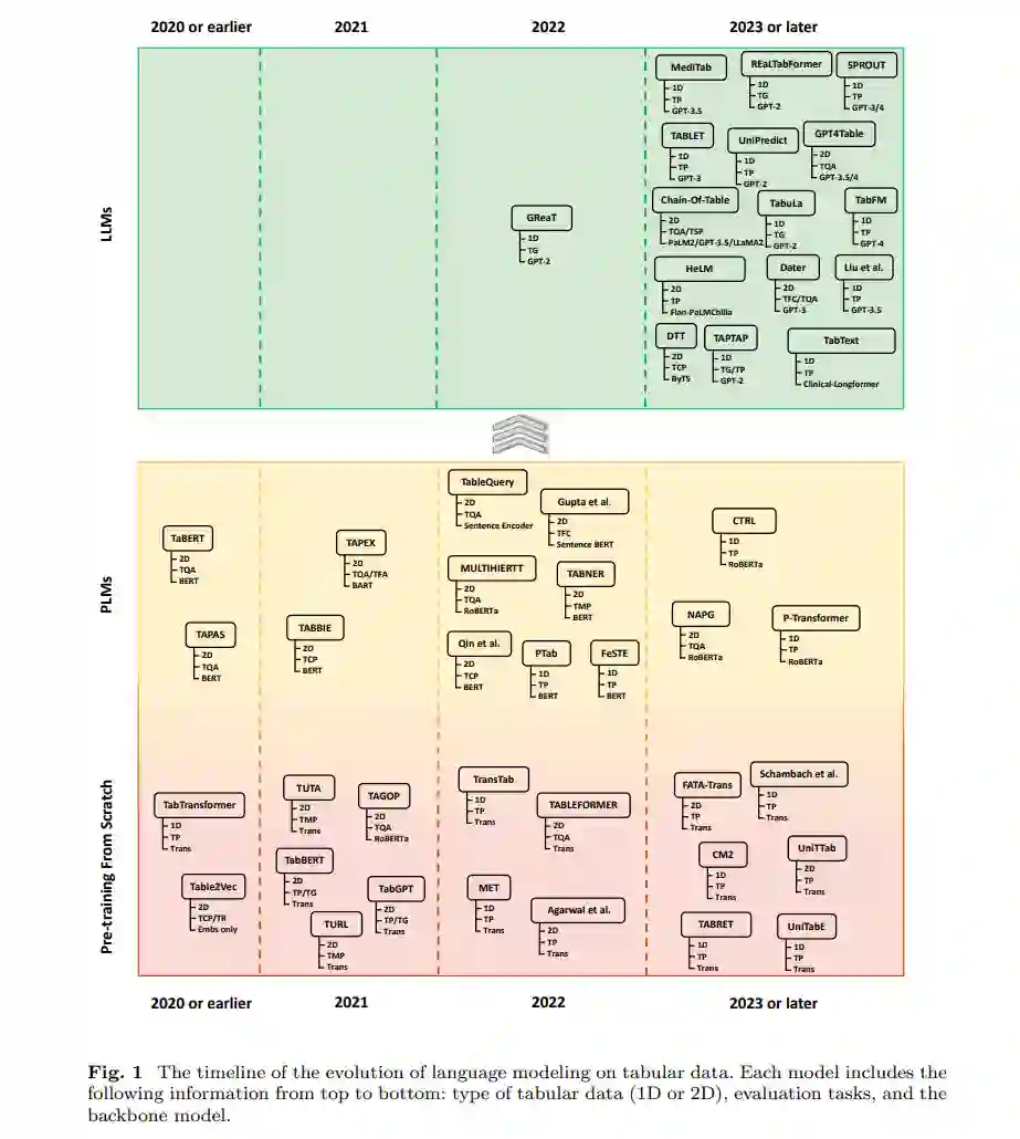 表格数据作为各个领域中广泛存在的数据类型,由于其异质性和复杂的结构关系,带来了独特的挑战。在表格数据分析中实现高预测性能和鲁棒性,对众多应用具有重要意义。受自然语言处理领域近期进展的影响,特别是Transformer架构的影响,表格数据建模的新方法不断涌现。早期技术集中在从头开始训练Transformers,但往往遇到可扩展性问题。随后,利用预训练语言模型(如BERT)的方法得到了发展,这些方法需要较少的数据,并且表现出更好的性能。最近,随着大型语言模型(如GPT和LLaMA)的出现,这一领域发生了进一步的革命,使得仅需最少微调便可实现更先进和多样的应用。