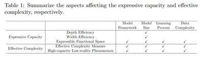 主要由于其优越的性能,深度学习在许多应用中具有破坏性,如计算机视觉[40]、自然语言处理[55]和计算金融[91]。然而,与此同时,关于深度学习模型的一系列基本问题仍然存在,如为什么深度学习的表达能力比经典机器学习模型有很大提高,如何理解和量化深度模型的泛化能力,如何理解和改进优化过程等。深度学习的模型复杂性是一个核心问题,与许多基础性问题有关。