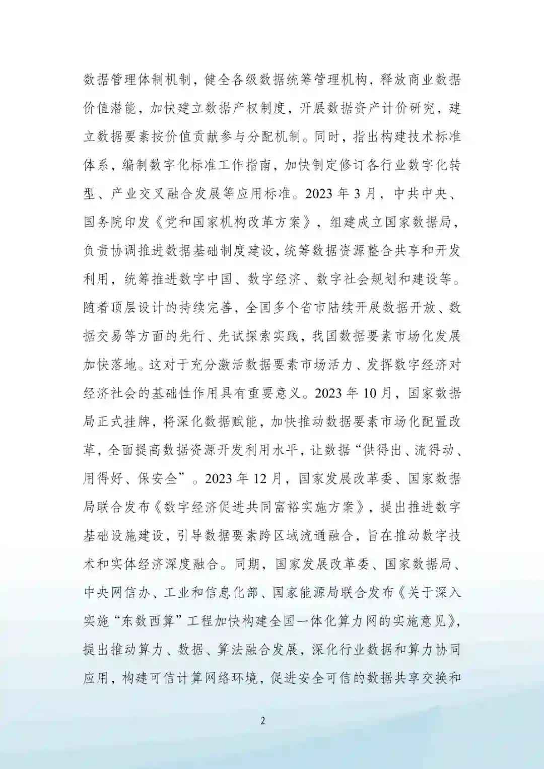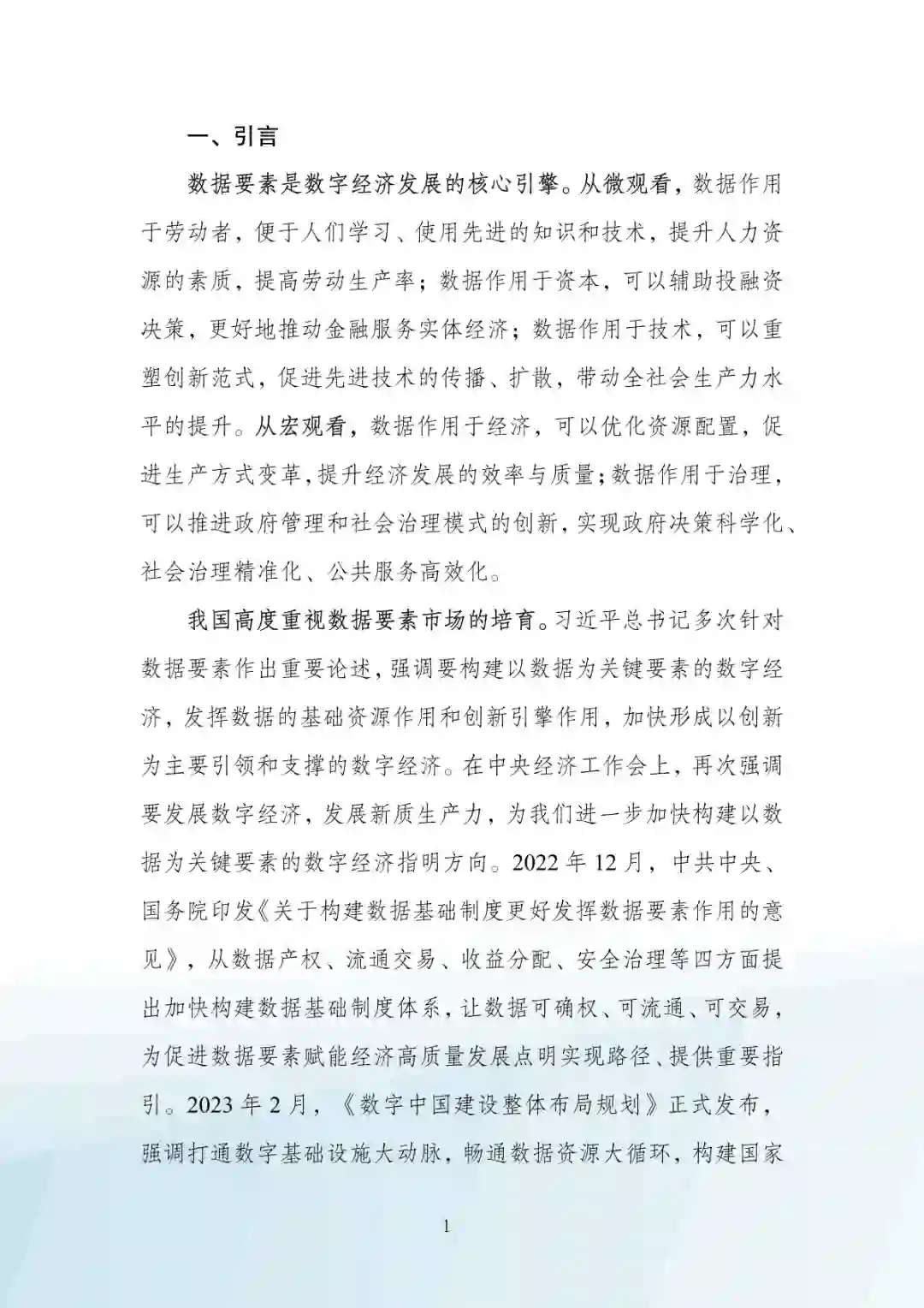 数据要素是数字经济发展的核心引擎。从微观看,数据作用 于劳动者,便于人们学习、使用先进的知识和技术,提升人力资 源的素质,提高劳动生产率;数据作用于资本,可以辅助投融资 决策,更好地推动金融服务实体经济;数据作用于技术,可以重 塑创新范式,促进先进技术的传播、扩散,带动全社会生产力水 平的提升。从宏观看,数据作用于经济,可以优化资源配置,促 进生产方式变革,提升经济发展的效率与质量数据作用于治理, 可以推进政府管理和社会治理模式的创新,实现政府决策科学化、 社会治理精准化、公共服务高效化。