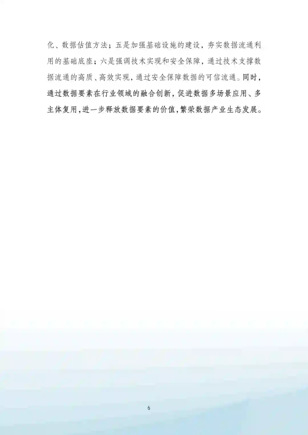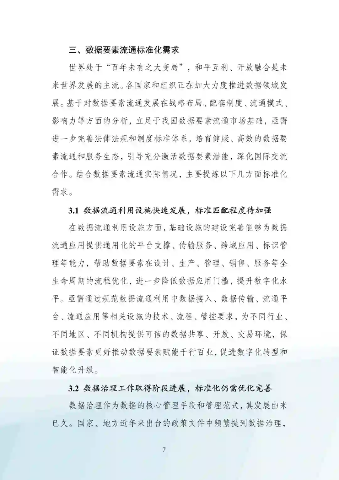 在数据流通利用设施方面,基础设施的建设完善能够为数据 流通应用提供通用化的平台支撑、传输服务、跨域应用、标识管 理等能力,帮助数据要素在设计、生产、管理、销售、服务等全 生命周期的流程优化,进一步降低数据应用门槛,提升数字化水 平。亟需通过规范数据流通利用中数据接入、数据传输、流通平 台、流通应用等相关设施的技术、流程、管控要求,为不同行业、 不同地区、不同机构提供可信的数据共享、开放、交易环境,保 证数据要素更好推动数据要素赋能千行百业,促进数字化转型和 智能化升级。