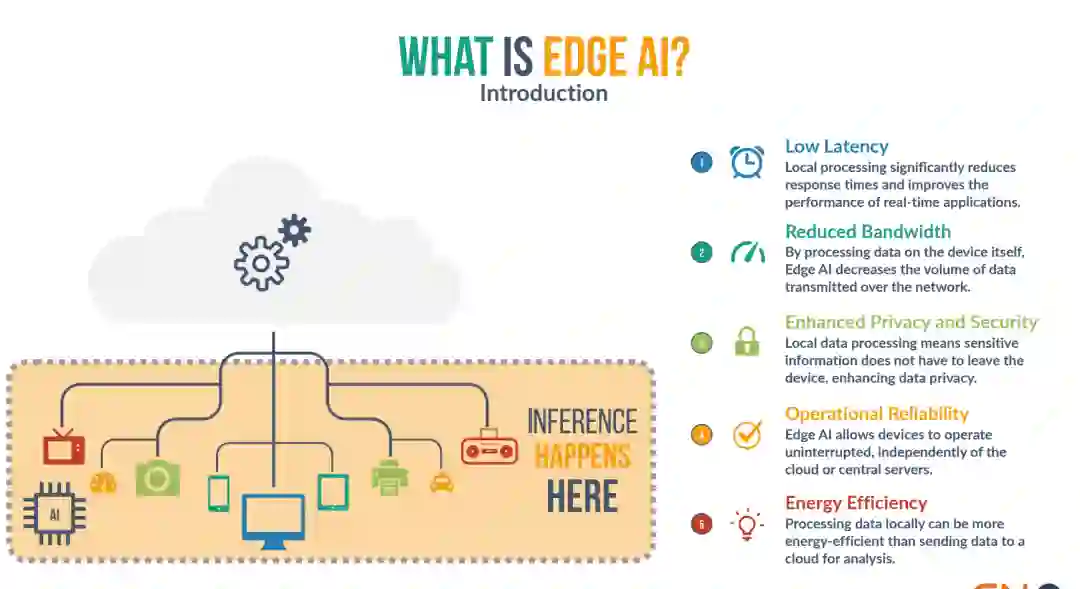 摘要 边缘AI是指在边缘设备上应用人工智能,即网络边缘的设备,如智能手机、平板电脑、笔记本电脑、摄像头、传感器和无人机等。边缘AI使这些设备能够自主执行AI任务,无需依赖云端或中央服务器连接。这带来了更高的速度、更低的延迟、更大的隐私保护和更低的能耗等好处。