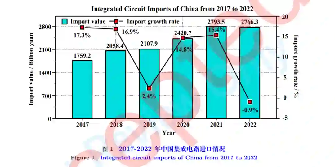 光刻机是集成电路制造中最为核心的高端装备, 在 60 余年的发展历程中不断挑战人类超精 密制造装备的极限, 推动着摩尔定律的持续向前和信息时代的飞速发展, 对于科技进步、国民经济、 国家安全具有极为重要的战略意义. 本文阐述了光刻机在集成电路制造装备中的核心地位, 介绍了 光刻的基本原理, 梳理了国际上光刻机从上世纪 60 年代至今的发展脉络, 围绕光刻机三大核心部件 阐述了光刻机中的关键技术及面临的极限技术挑战. 在此基础上, 本文展望了未来光刻机的发展趋 势和未来方向.随着现代信息技术的迅猛发展, 集成电路 (Integrated Circuit, IC) 已成为信息时代的核心. 自 1958 年第一块集成电路诞生以来, 其工艺技术持续高速发展, 极大地推动了计算机、通信和消费电 子等产业的飞速进步. 著名的摩尔定律预示了集成电路性能的持续增长路径, 它指出在价格不变的 情况下, 集成电路上可容纳的晶体管数目大约每 18-24 个月翻一倍 [1] . 这不仅仅预测了晶体管尺寸 的缩小、集成电路上晶体管集成度的不断提高, 还预示着集成电路计算能力的指数级增长. 然而, 摩 尔定律的持续成立不是自然而然的结果, 它背后是集成电路制造技术的不懈革新和进步, 集成电路装 备的每一次技术革新, 都是将摩尔定律从理论推向现实的过程. 国务院 2020 年发布《新时期促进集成电路产业和软件产业高质量发展的若干政策》指出, 集成 电路产业和软件产业是信息产业的核心, 是引领新一轮科技革命和产业变革的关键力量. 集成电路 及其装备的制造能力如今已成为评判一个国家高技术装备产业发展水平的重要标准, 成为大国竞争 的关键战场、国民经济的核心支柱以及国家安全的重要保障. 海关总署数据显示, 2017-2022 年我国 集成电路进口额整体呈现增长态势, 如图1所示1) . 近年来, 集成电路一直是我国第一大进口商品, 其中 2021 年进口额达到 4397 亿美元, 相当于第二名原油和第三名铁矿的总和; 2022 年进口额为 4156 亿美元, 而根据美国半导体产业协会 (Semiconductor Industry Association, SIA) 的数据, 2022 年全 球芯片销售额为 5735 亿美元 [3] . 中国集成电路需求旺盛, 但自给量不足, 需要大量进口, 对外依赖程 度较高. 为此, 国家从本世纪初至今密集出台集成电路相关政策文本, 如图2所示, 旨在提高我国芯片 自给率, 推动集成电路产业发展.
