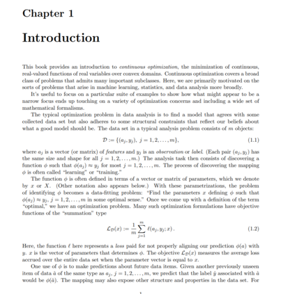 这本书涵盖了适合计算机科学、工业工程、电气工程和相关领域的研究生的四分之一长度的优化课程的材料。 https://people.eecs.berkeley.edu/~brecht/opt4ml_book/ 目录内容: 1. Introduction 1. Foundations 1. Elementary Descent Methods 1. Gradient Methods Using Momentum 1. Stochastic Gradient Methods 1. Coordinate Descent Methods 1. First-Order Methods for Constrained Optimization 1. Nonsmooth Functions and Subgradients 1. Nonsmooth Optimization Methods