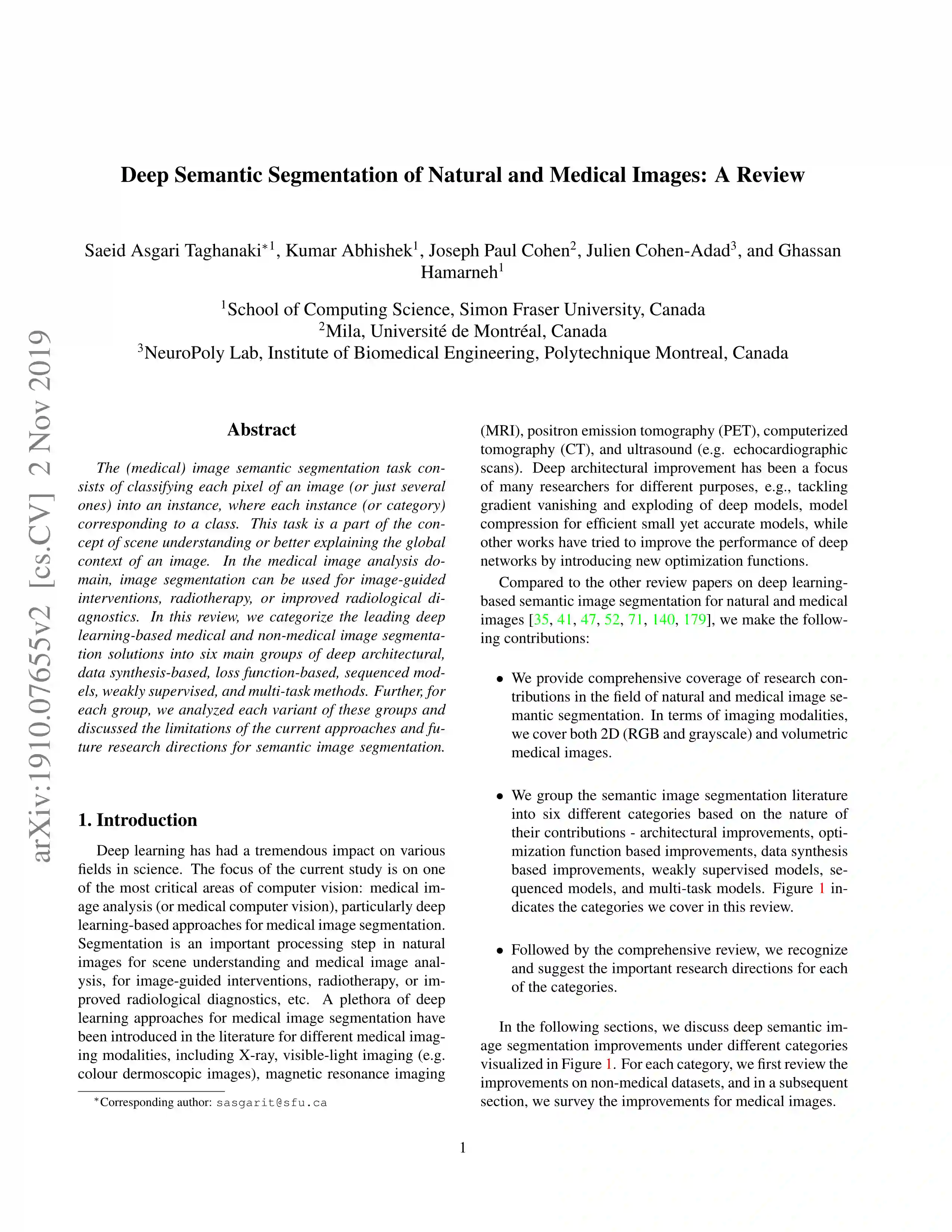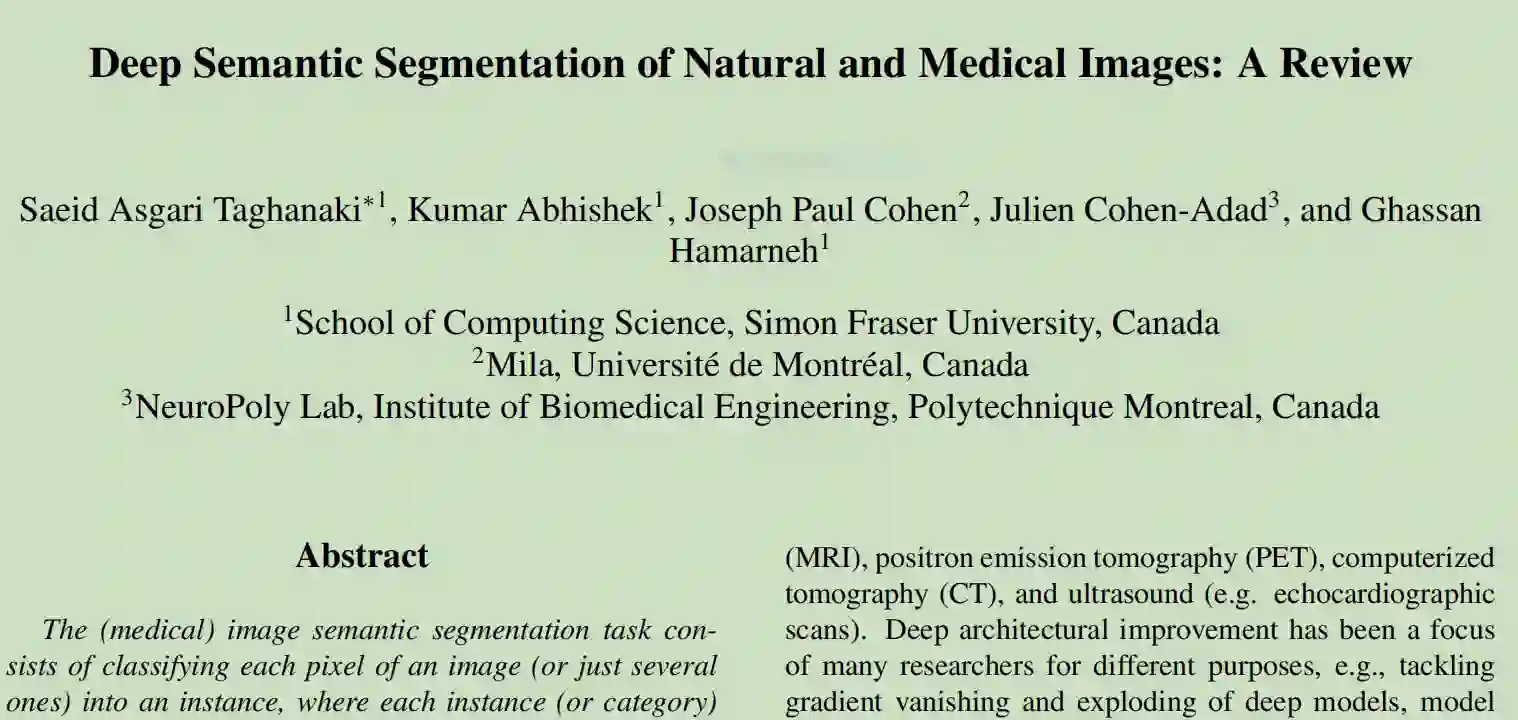 论文主题: Deep Semantic Segmentation of Natural and Medical Images: A Review