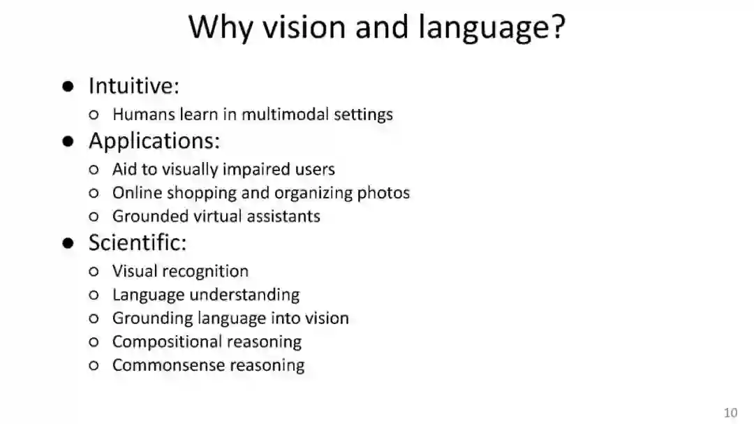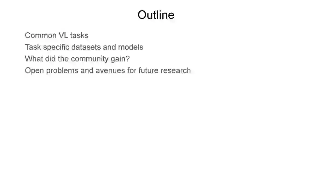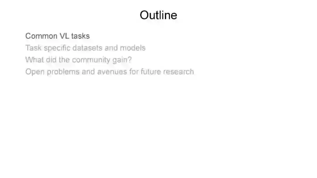 本教程的目标是概述多模态预训练问题的处理所需的要素,特别是视觉和语言。我们还将讨论这一领域的一些开放性问题和有希望的未来方向。